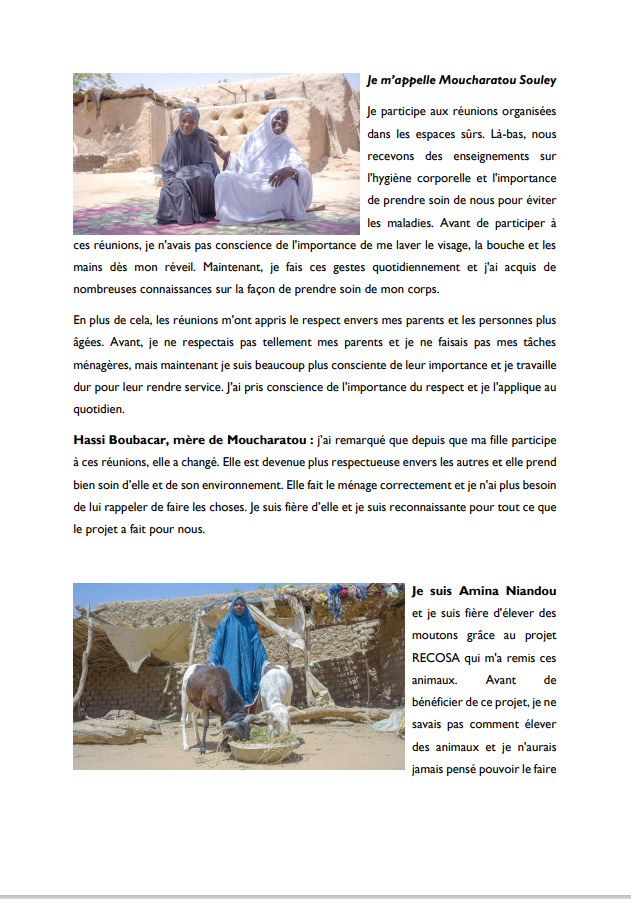 ce numéro comporte un ensemble de témoignages des bénéficiaires du projet RECOSA