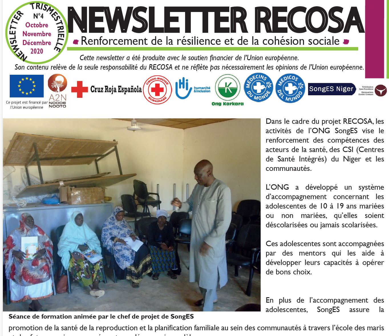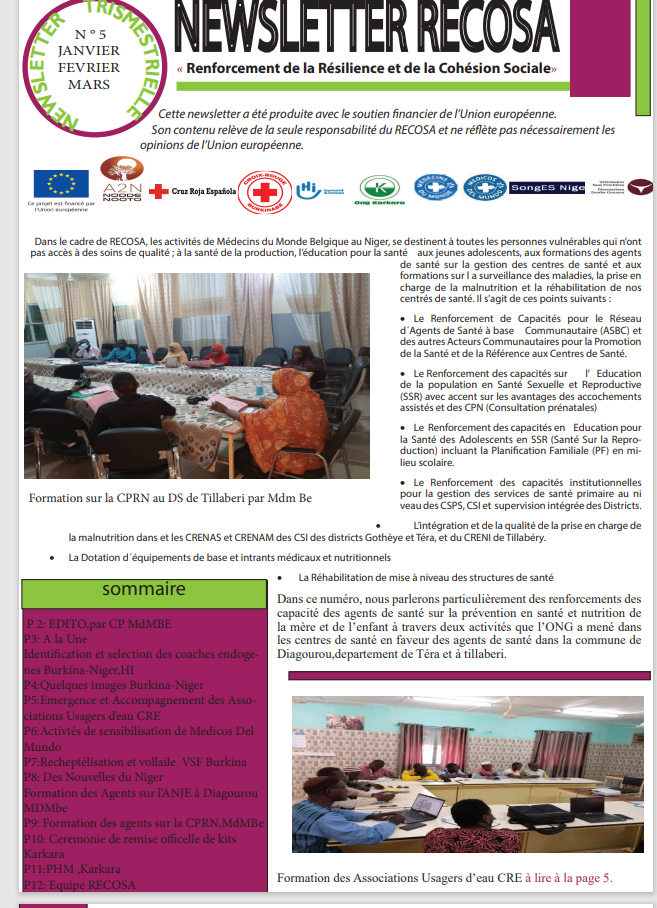 Dans le cadre du projet RECOSA, les activités de l’ONG SongES vise le renforcement des compétences des acteurs de la santé, des CSI (Centres de Santé Intégrés) du Niger et les communautés. L’ONG a dév
