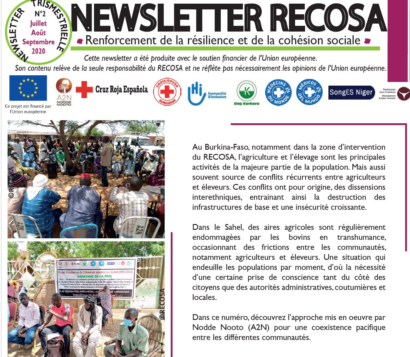 Le projet RECOSA « renforcement de la résilience et de la cohésion sociale des populations vulnérables des régions transfrontalières du Burkina-Faso (région du Sahel) et du Niger (région de Tillabé