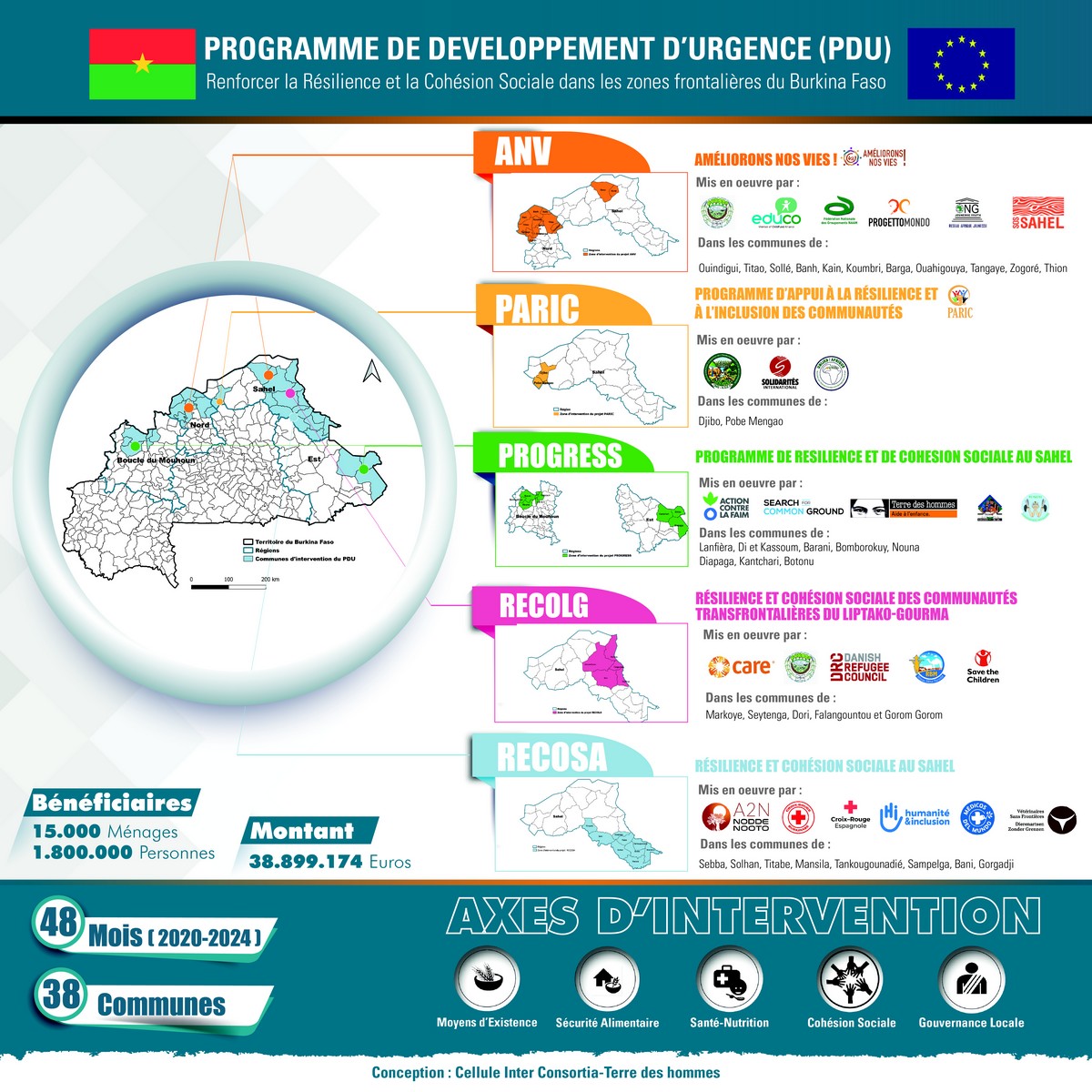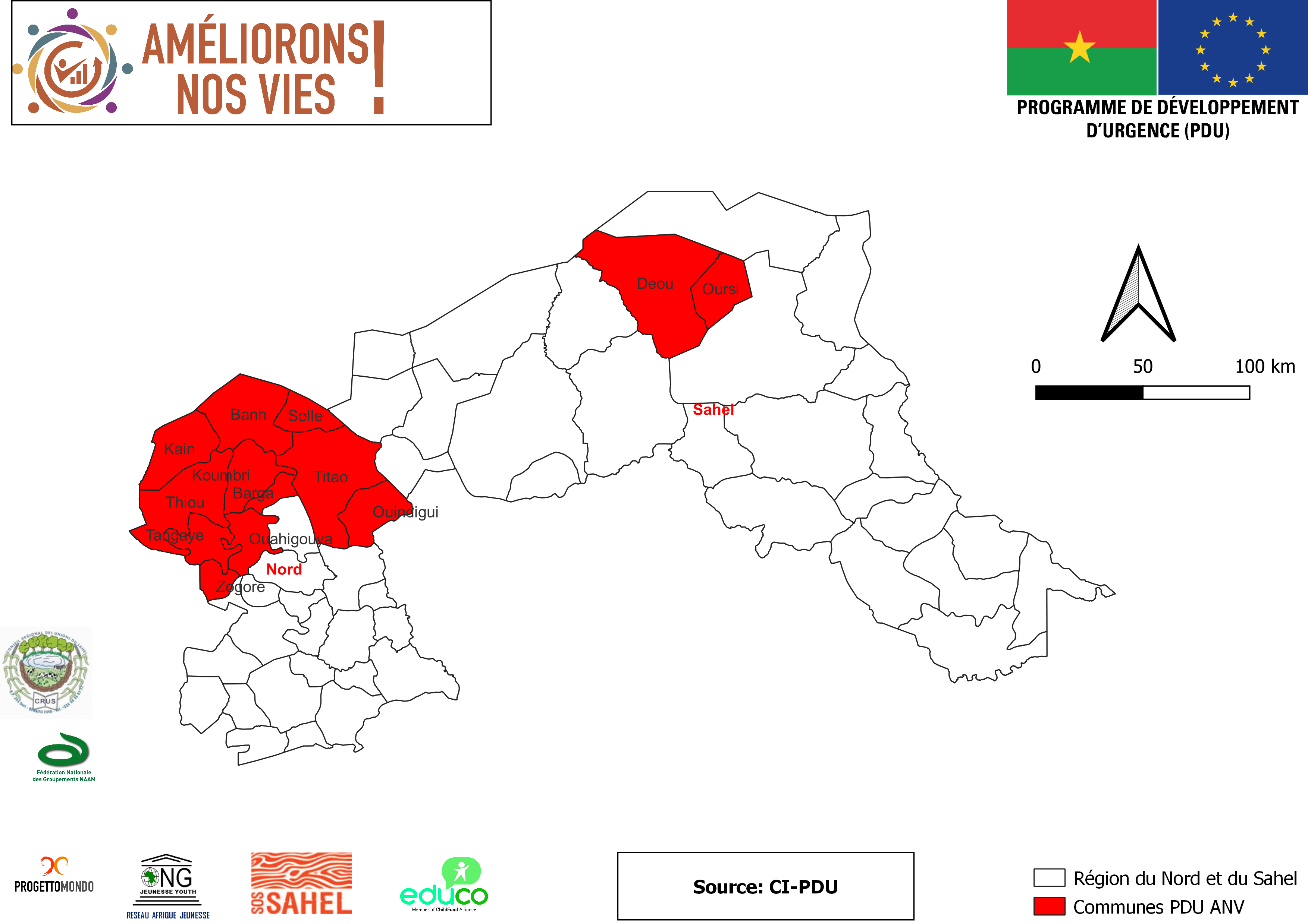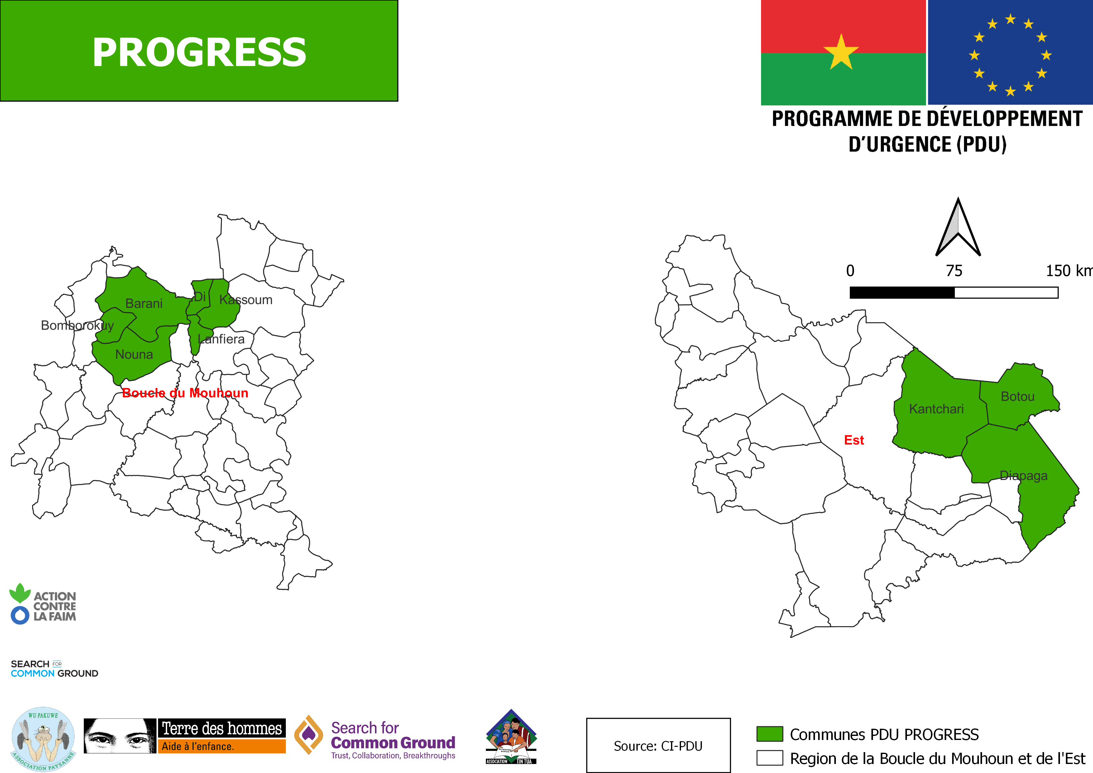 Visuel zone d'interventions PROGRESS (Programme de Résilience et de Cohésion Sociale au Sahel)